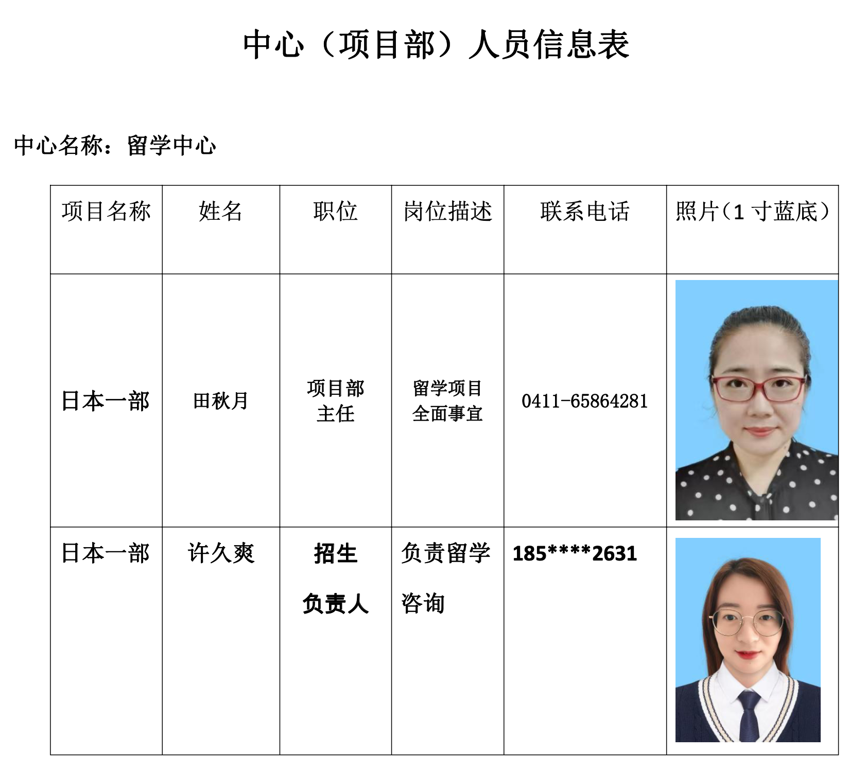 日本一部人员信息表